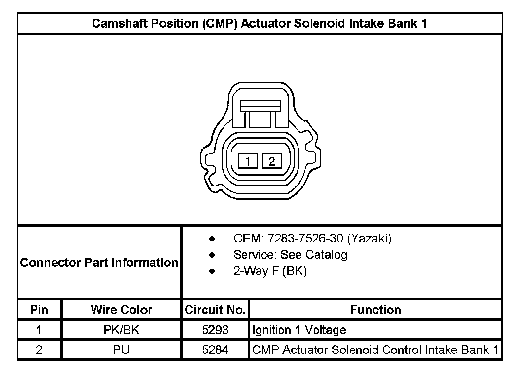 Camshaft Position (CMP) Actuator Solenoid Intake Bank 1: