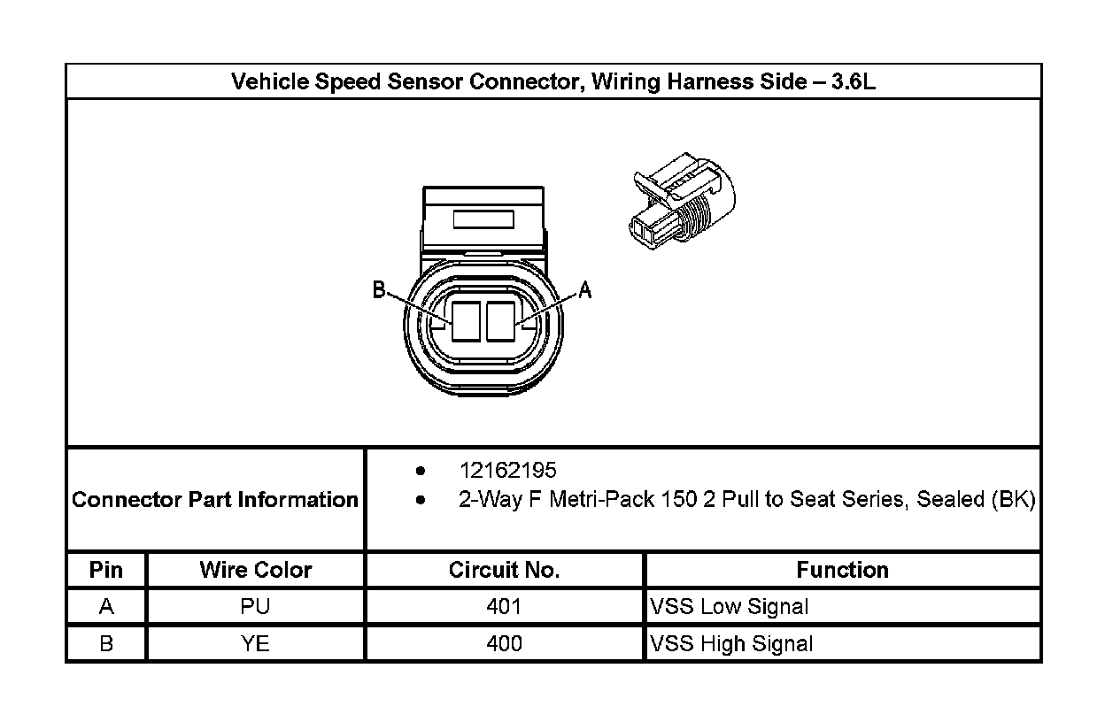 Vehicle Speed Sensor Connector, Wiring Harness Side - 3.6L: