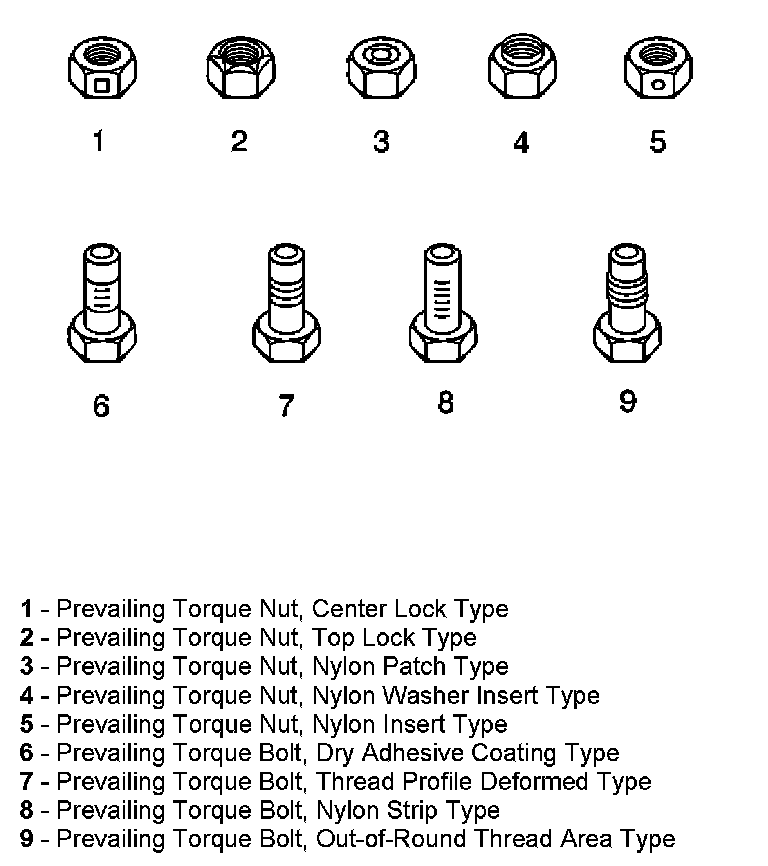 These fasteners accomplish the thread interface by the presence of a thread-locking compound on the fastener threads. Refer to the appropriate repair procedure in order to determine if the fastener may be reused and the applicable thread-locking compound to apply to the fastener.