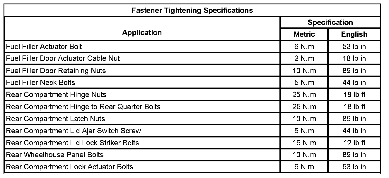 Fastener Tightening Specifications