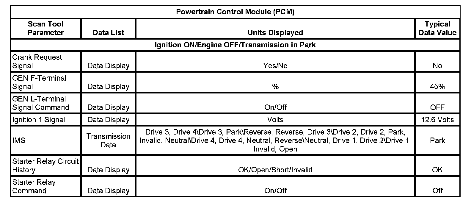 Scan Tool Data List