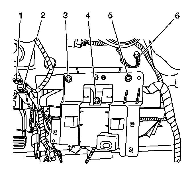 4. Start the bolts by hand to avoid cross threading. Install the vehicle location antenna module bracket bolts (3, 4, 5).