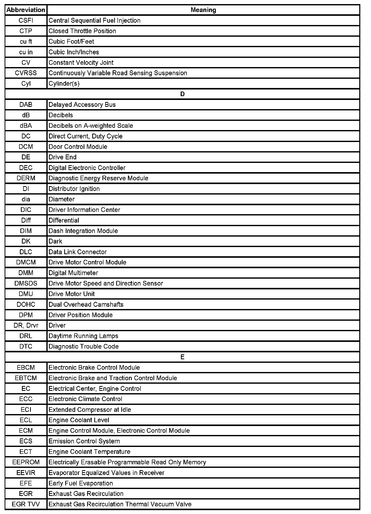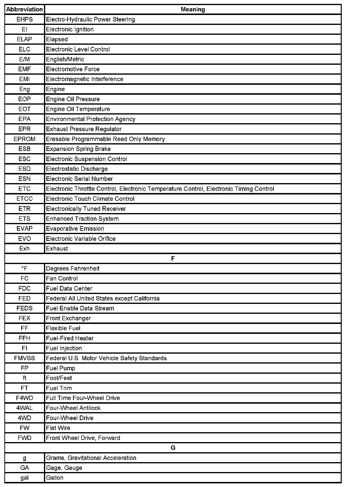 ABBREVIATIONS AND MEANINGS