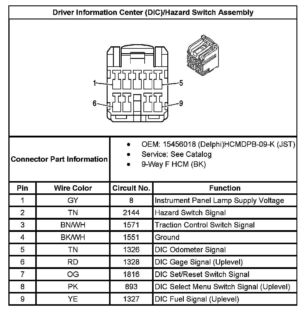 Driver Information Center (DIC)/Hazard Switch Assembly: