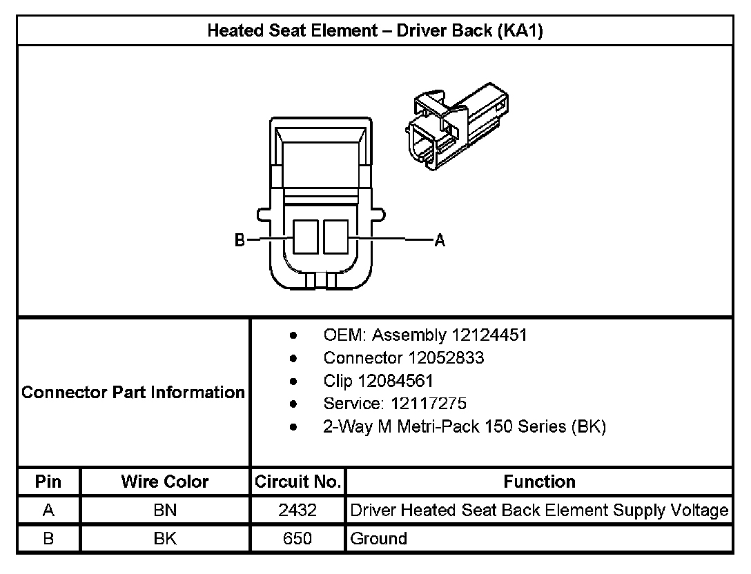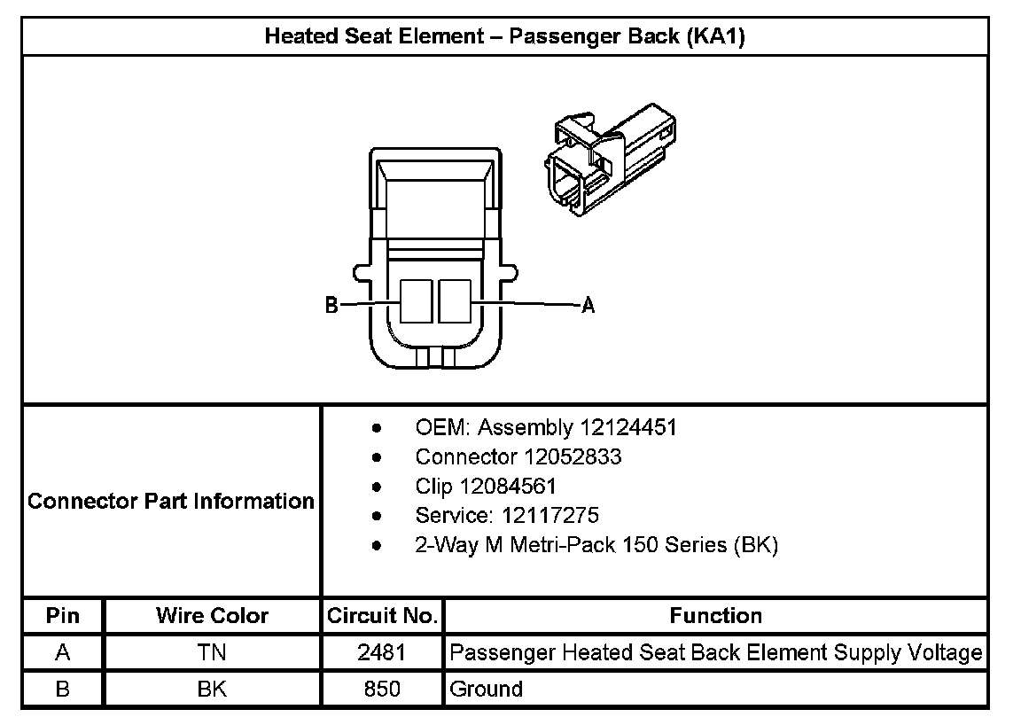 Heated Seat Element - Passenger Back (With RPO Code KA1):