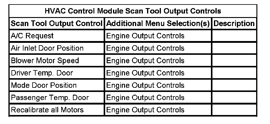 HVAC Control Module Scan Tool Output Controls: