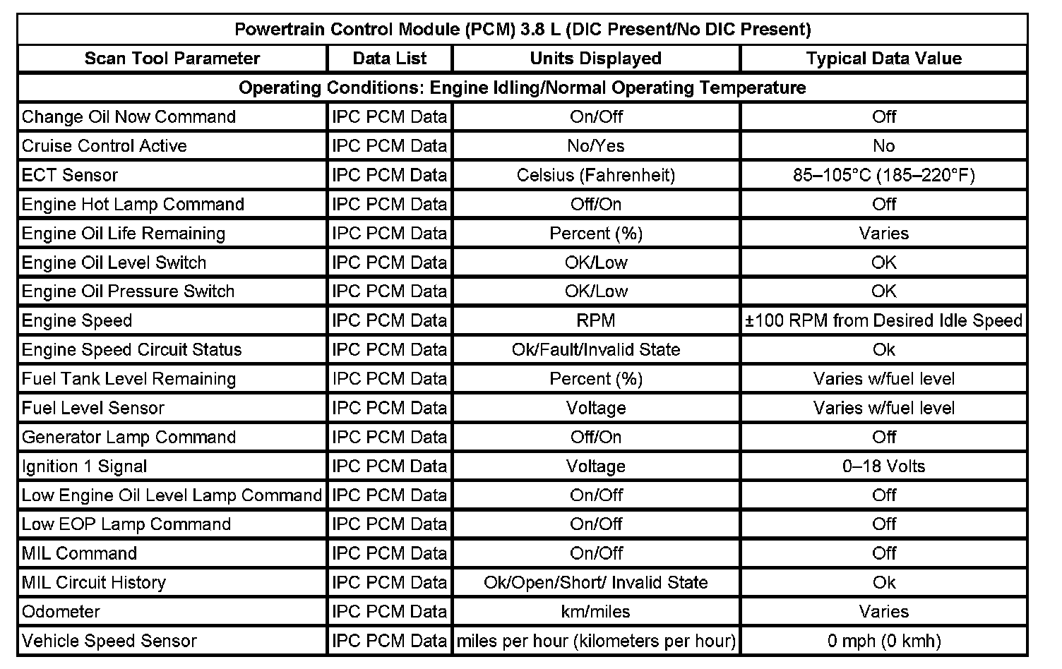 Powertrain Control Module (PCM) (DIC Present/No DIC Present):