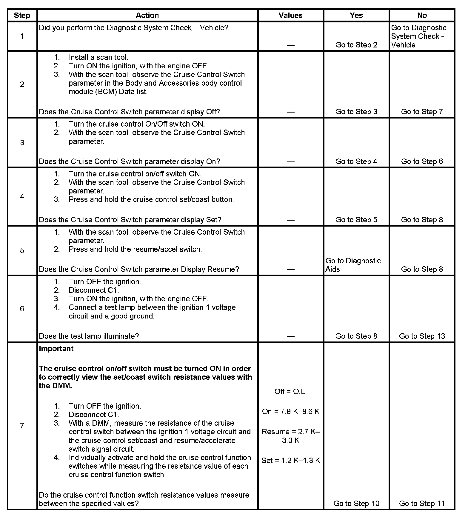 The number below refers to the step number on the diagnostic table.