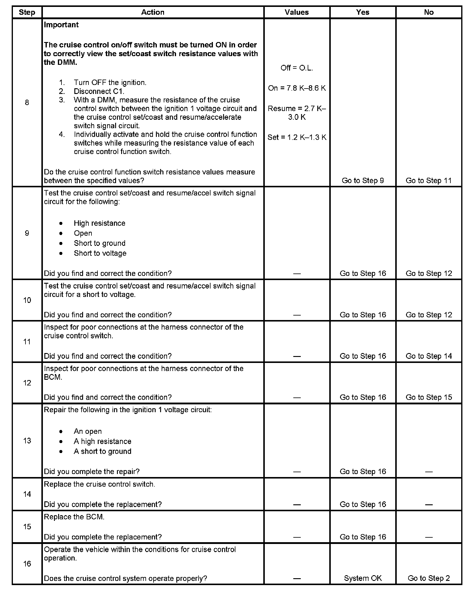 Cruise Control Inoperative/Malfunctioning