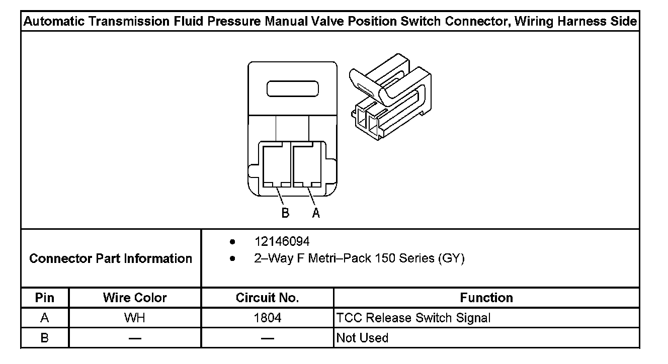 Automatic Transmission Fluid Pressure Manual Valve Position Switch Connector, Wiring Harness Side: