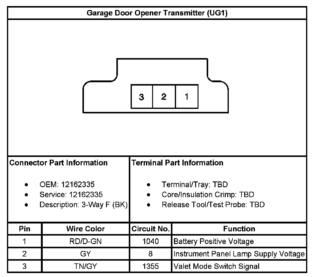 Garage Door Opener Transmitter (With RPO Code UG1):