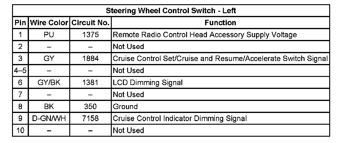 Steering Wheel Control Switch - Left