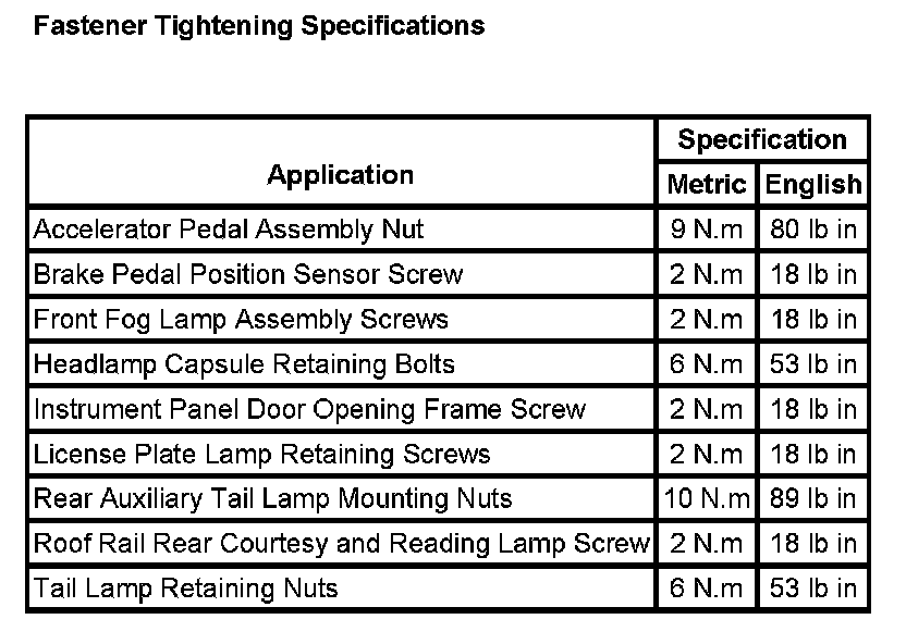 Lighting and Horns: Specifications
