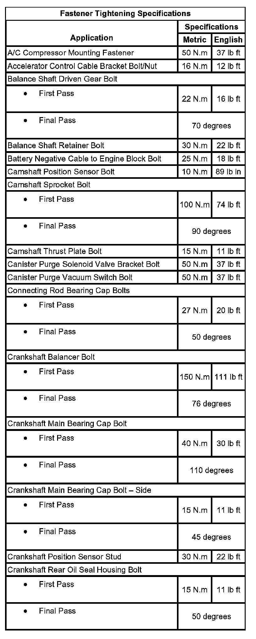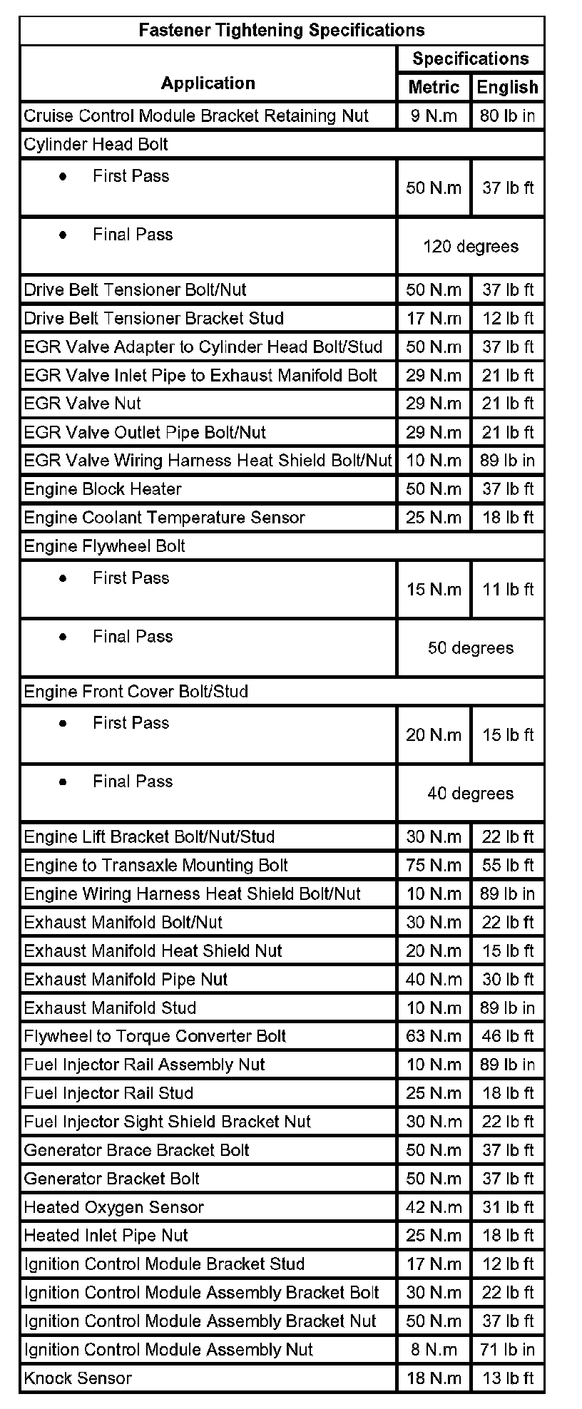 Fastener Tightening Specifications: