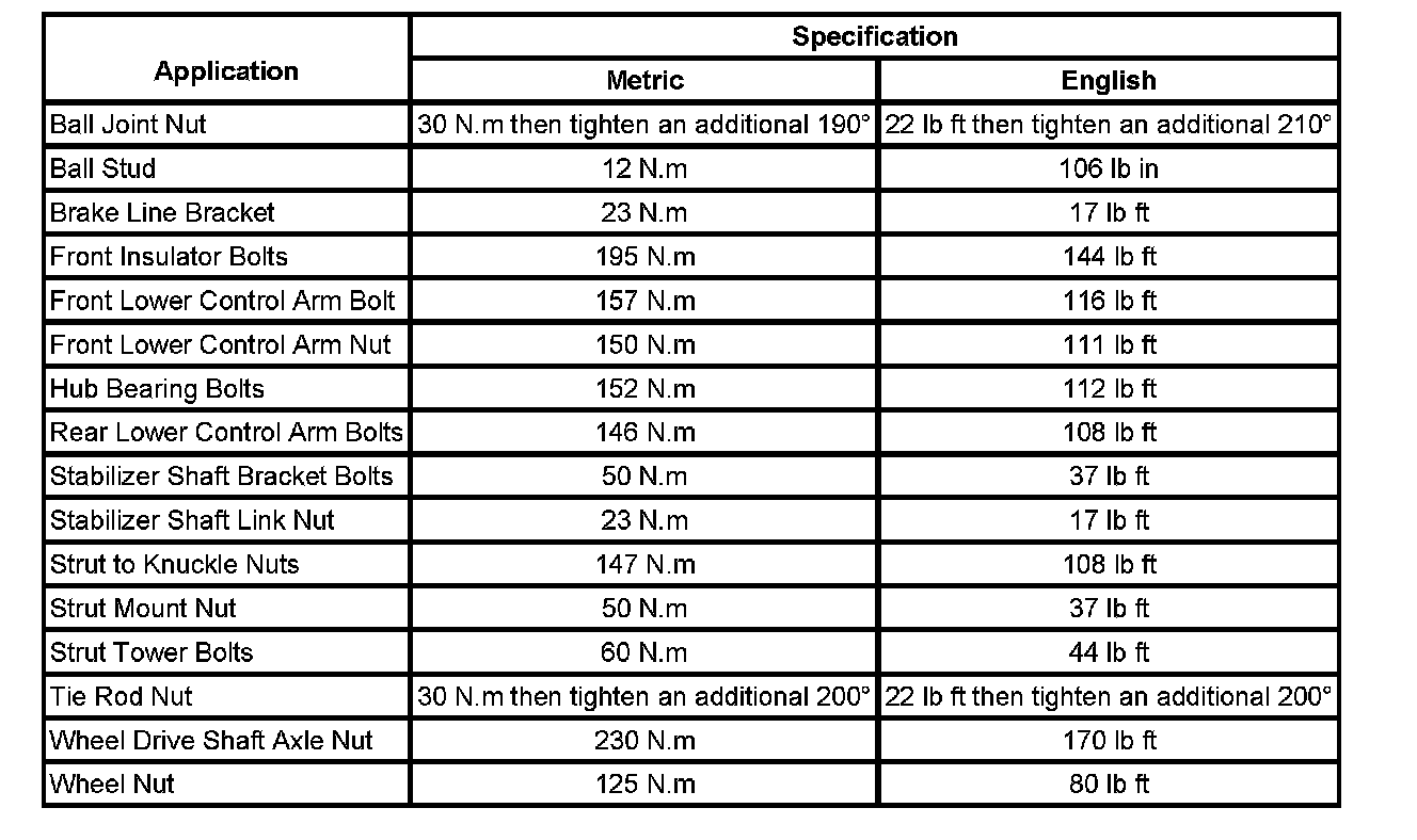Fastener Tightening Specifications: