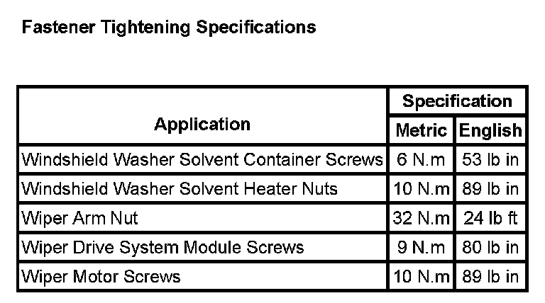 Wiper and Washer Systems: Specifications