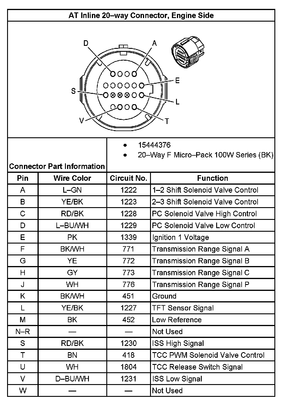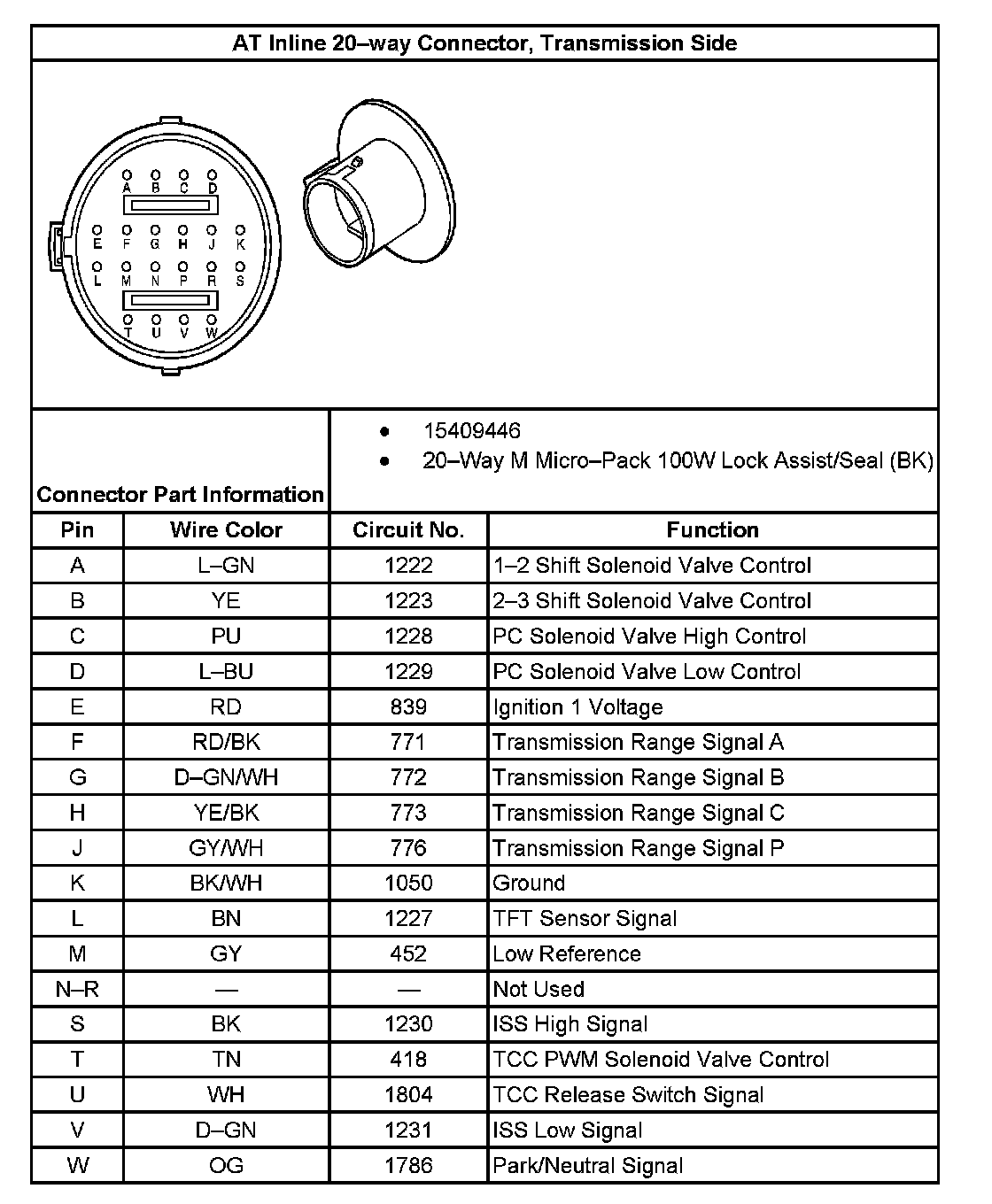 AT Inline 20-way Connector, Transmission Side: