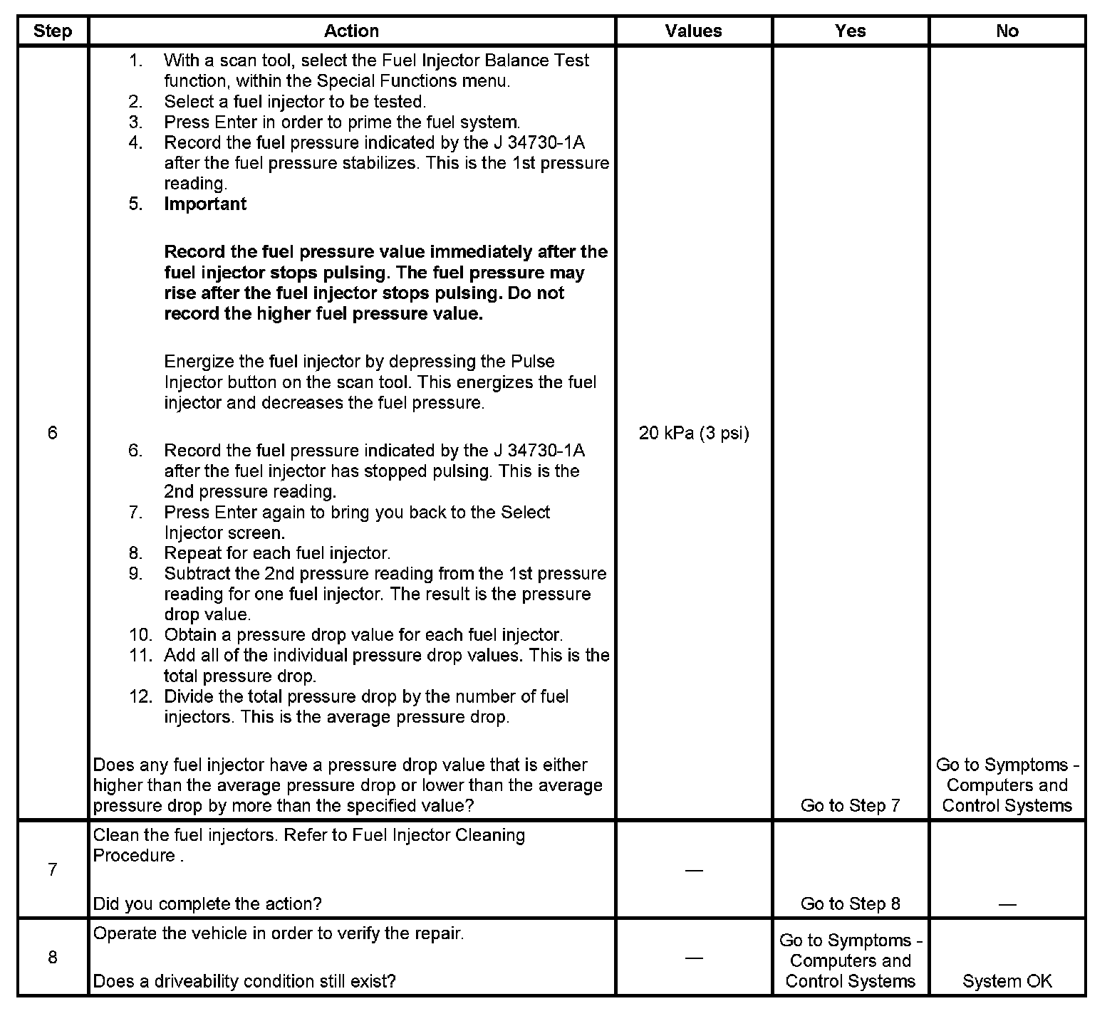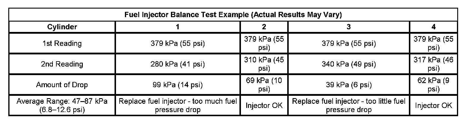 Fuel Injector Balance Test Example (Actual Results May Vary):
