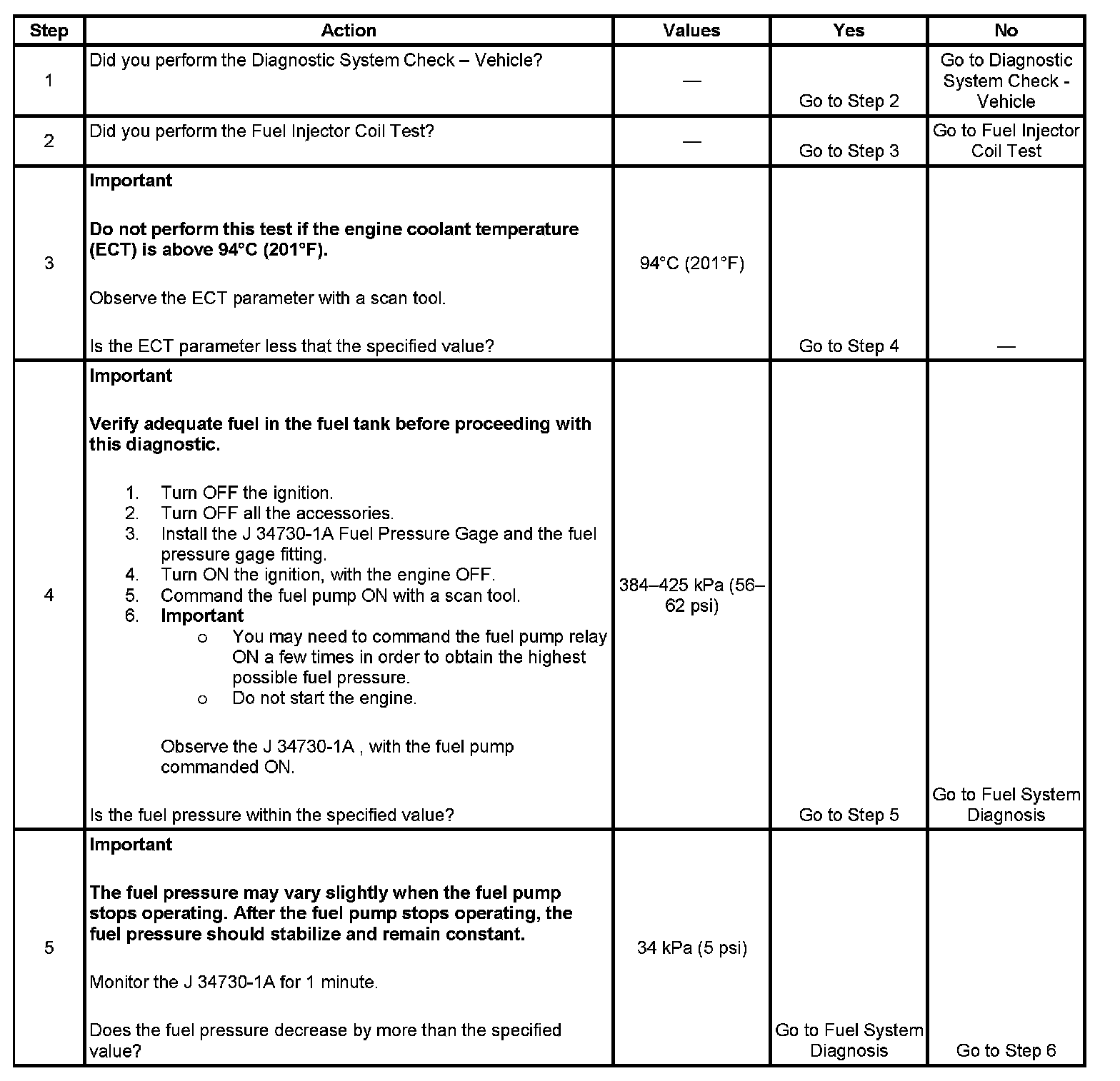 3. The engine coolant temperature (ECT) must be below the operating temperature in order to avoid irregular fuel pressure readings due to hot soak fuel boiling.