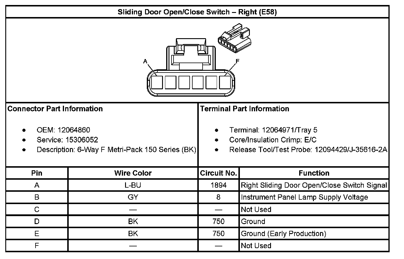 Sliding Door Open/Close Switch - Left (With RPO Code E59):