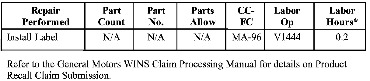 General Motors will notify customers of this recall on their vehicle (see copy of customer letter shown in this bulletin). A label was included with the original bulletin there is no label available for this copy.