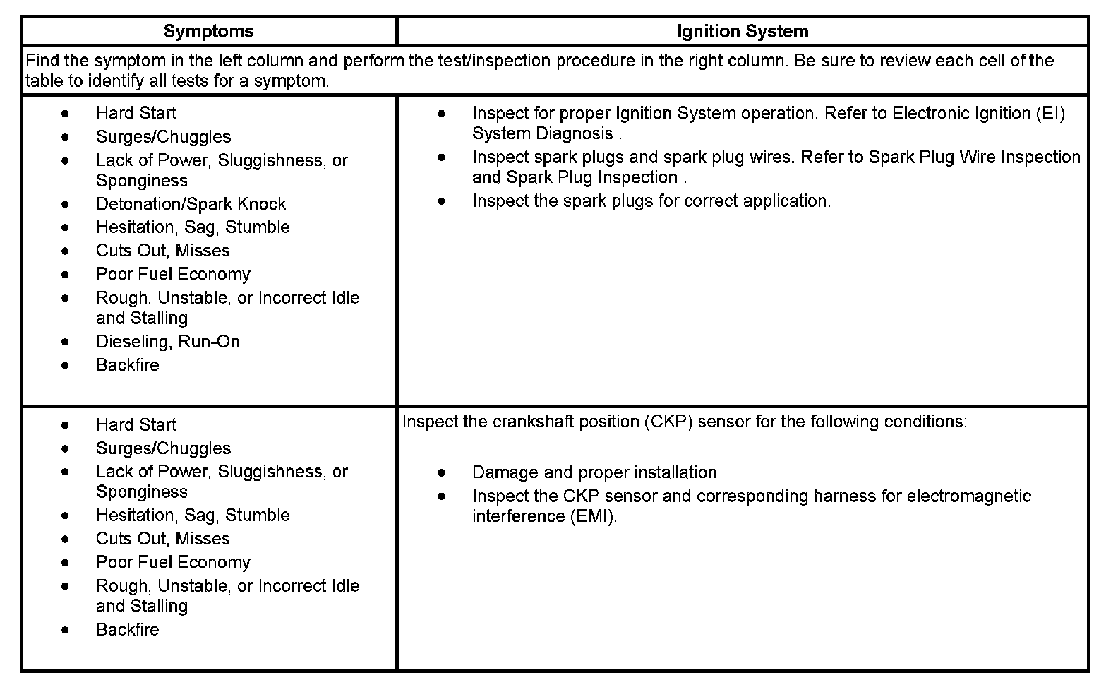 - Symptoms - Ignition System