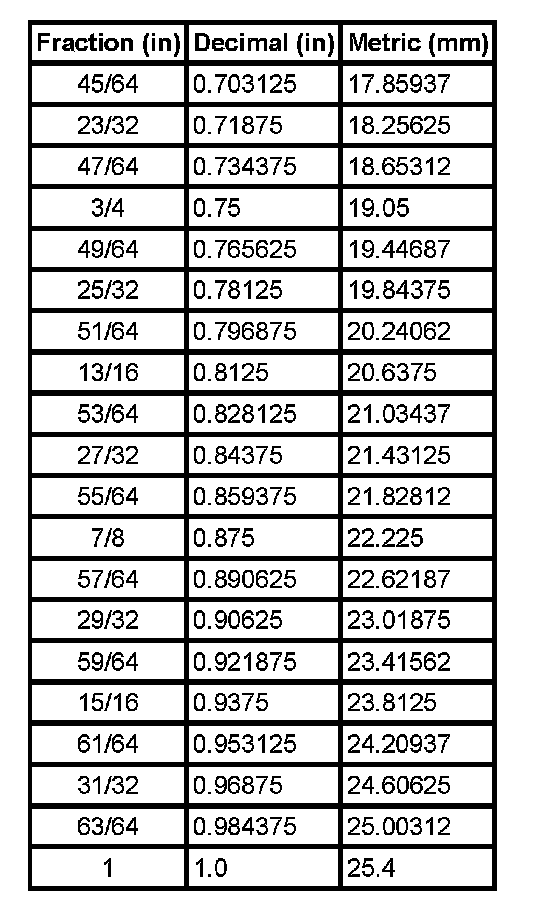 Decimal and Metric Equivalents
