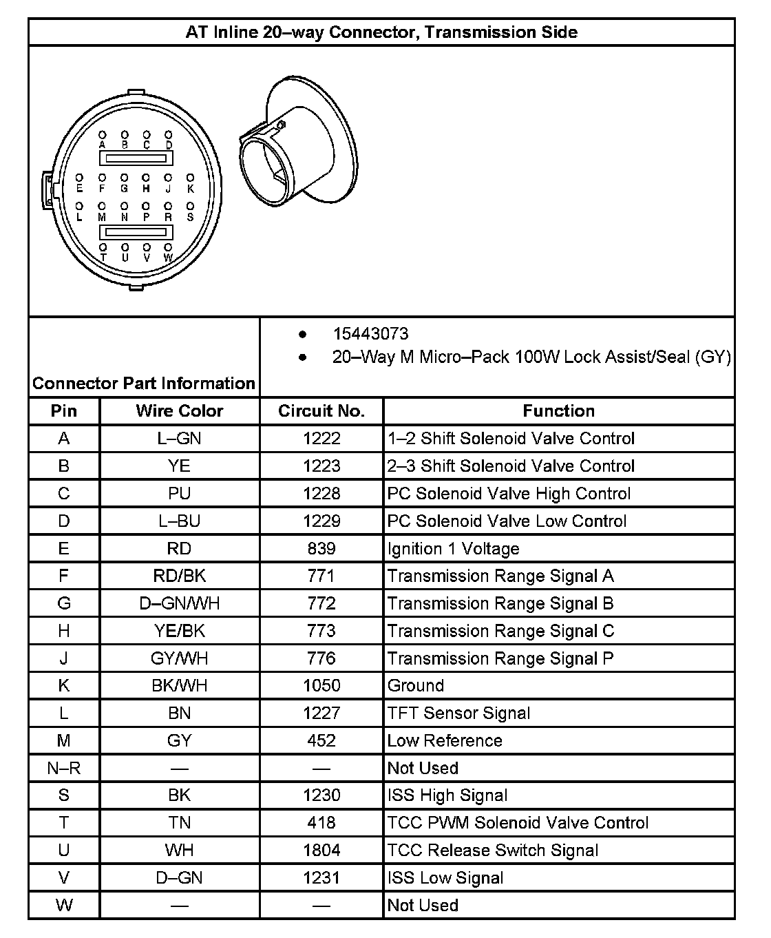 AT Inline 20-Way Connector, Transmission Side: