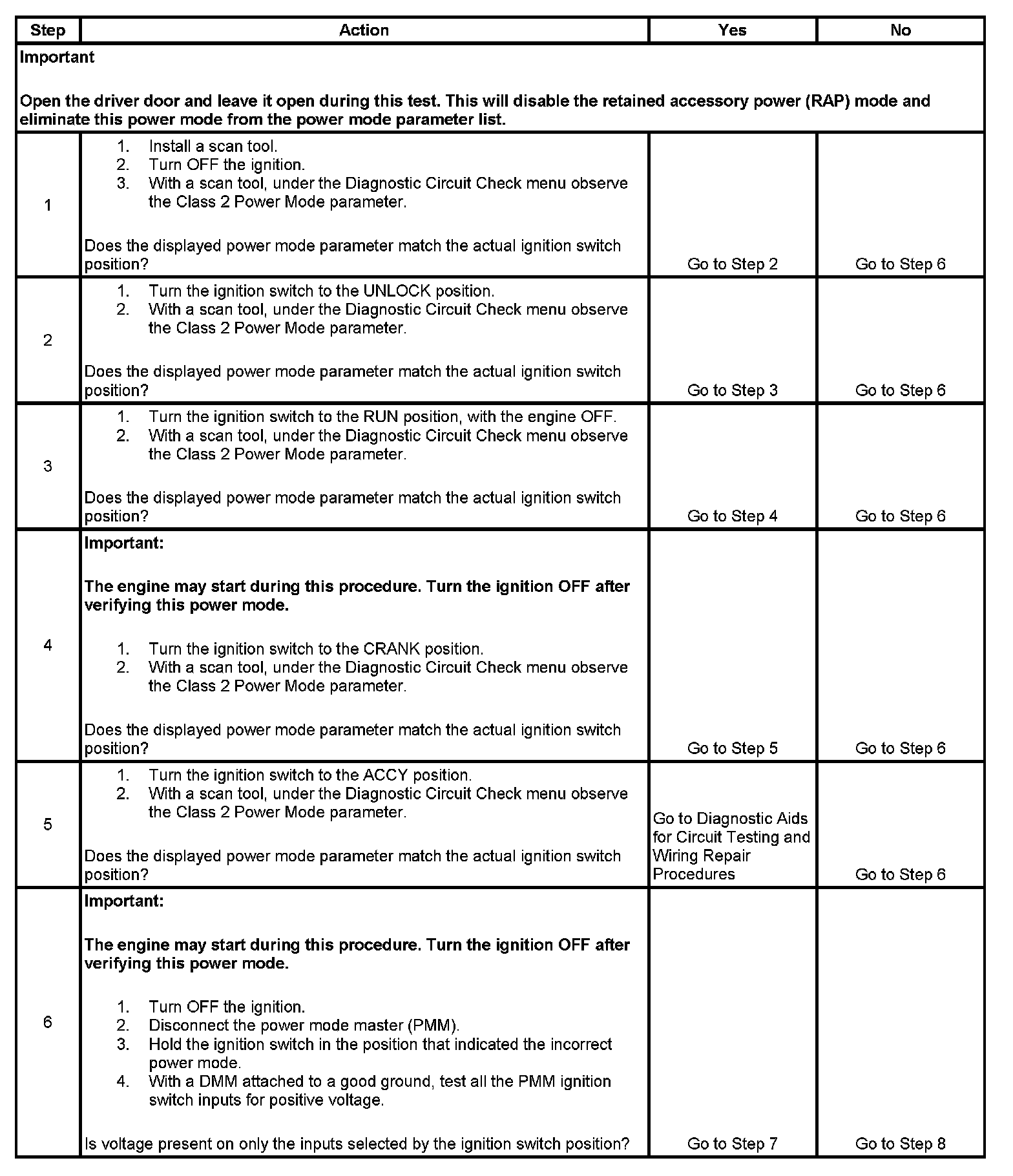 7. This step tests for no battery voltage on the required signal circuits.