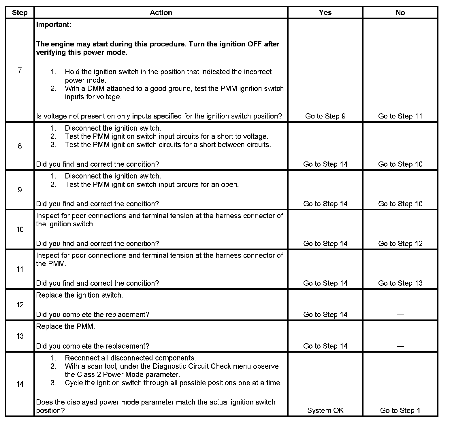 8. If any ignition switch parameters that should be inactive in the present ignition switch position are active, 2 ignition switch signal circuits may be shorted together.
