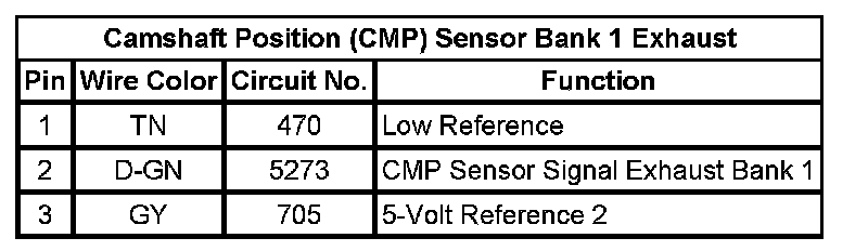 Camshaft Position (CMP) Sensor Bank 1 Exhaust