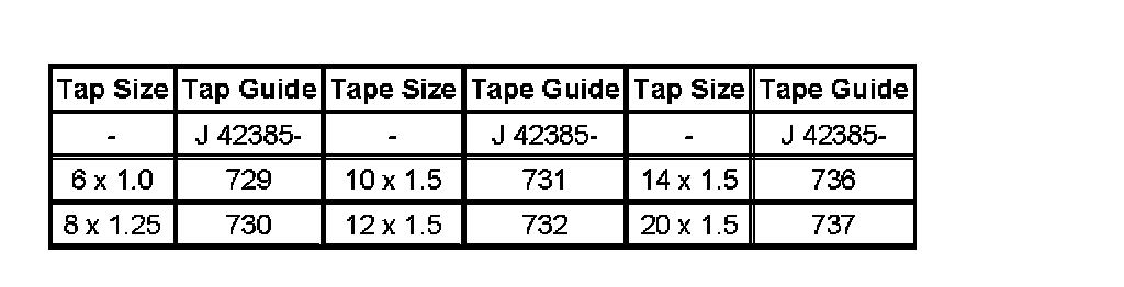The drill bit and counter bore tool from the tool kit J 42385-700 and J 42385-2000 is designed for use with either a suitable tap wrench or drill motor. Limited access and larger hole repair may process better using a tap wrench. An extension from kit J 43965 may also be necessary to drive the thread repair tooling dependent on access to the hole being repaired. Use only a tap wrench when tapping the hole and during installation of the insert.