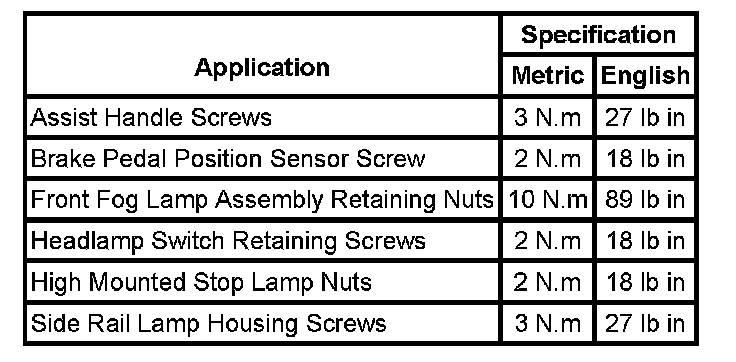 Fastener Tightening Specifications