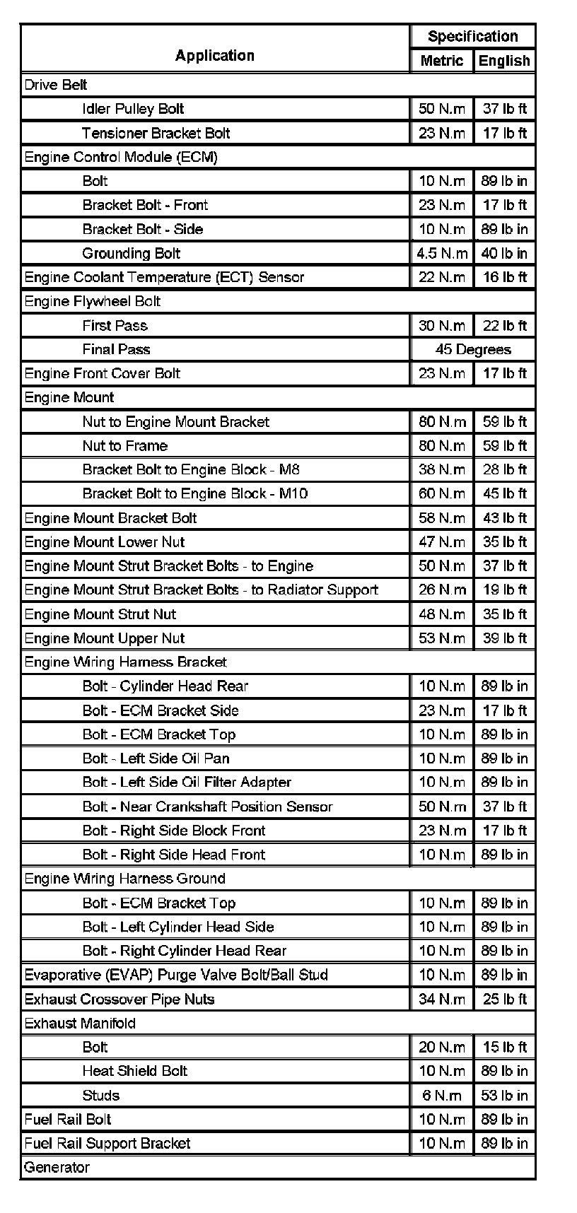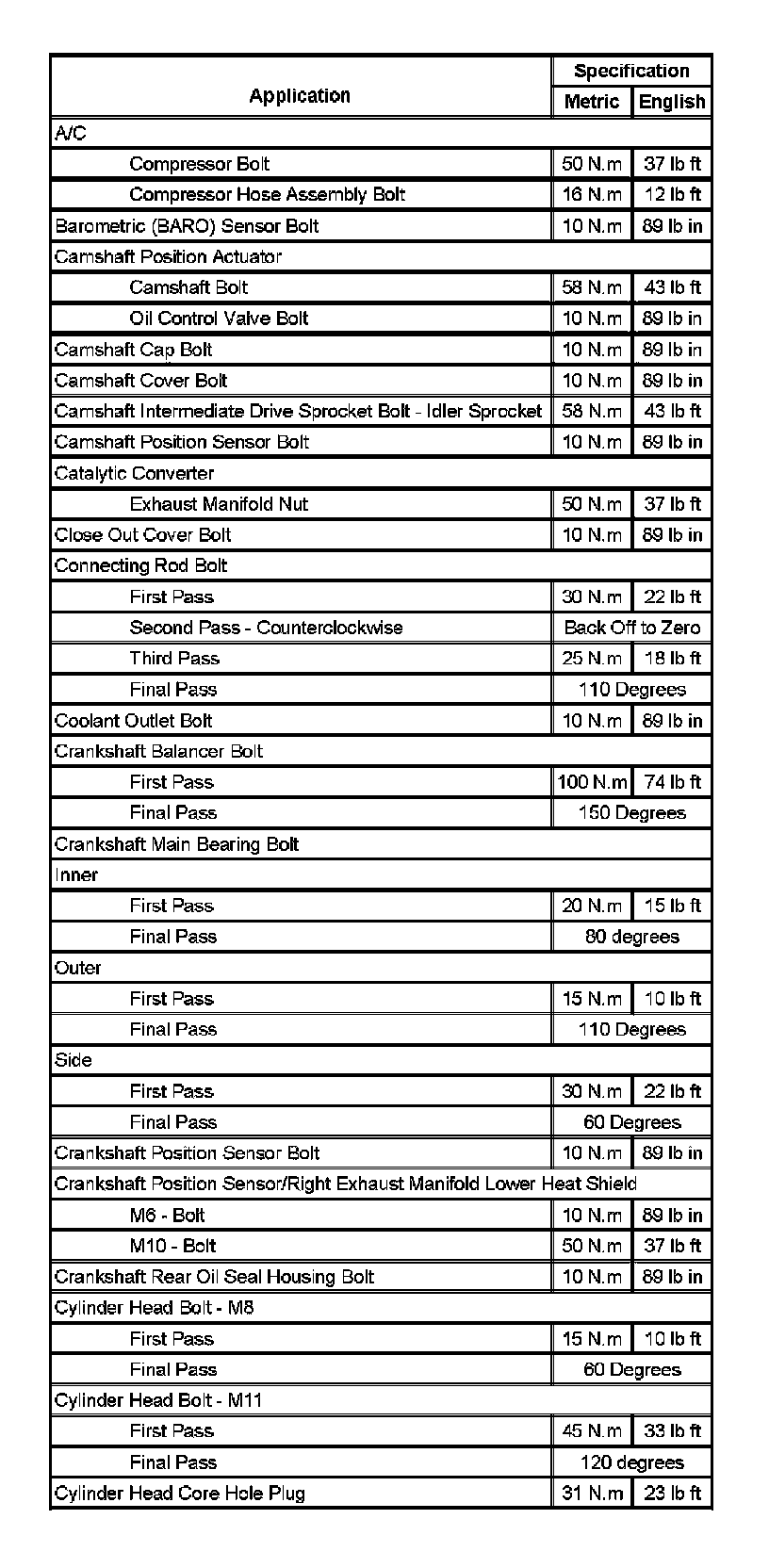 Fastener Tightening Specifications (Part 1):