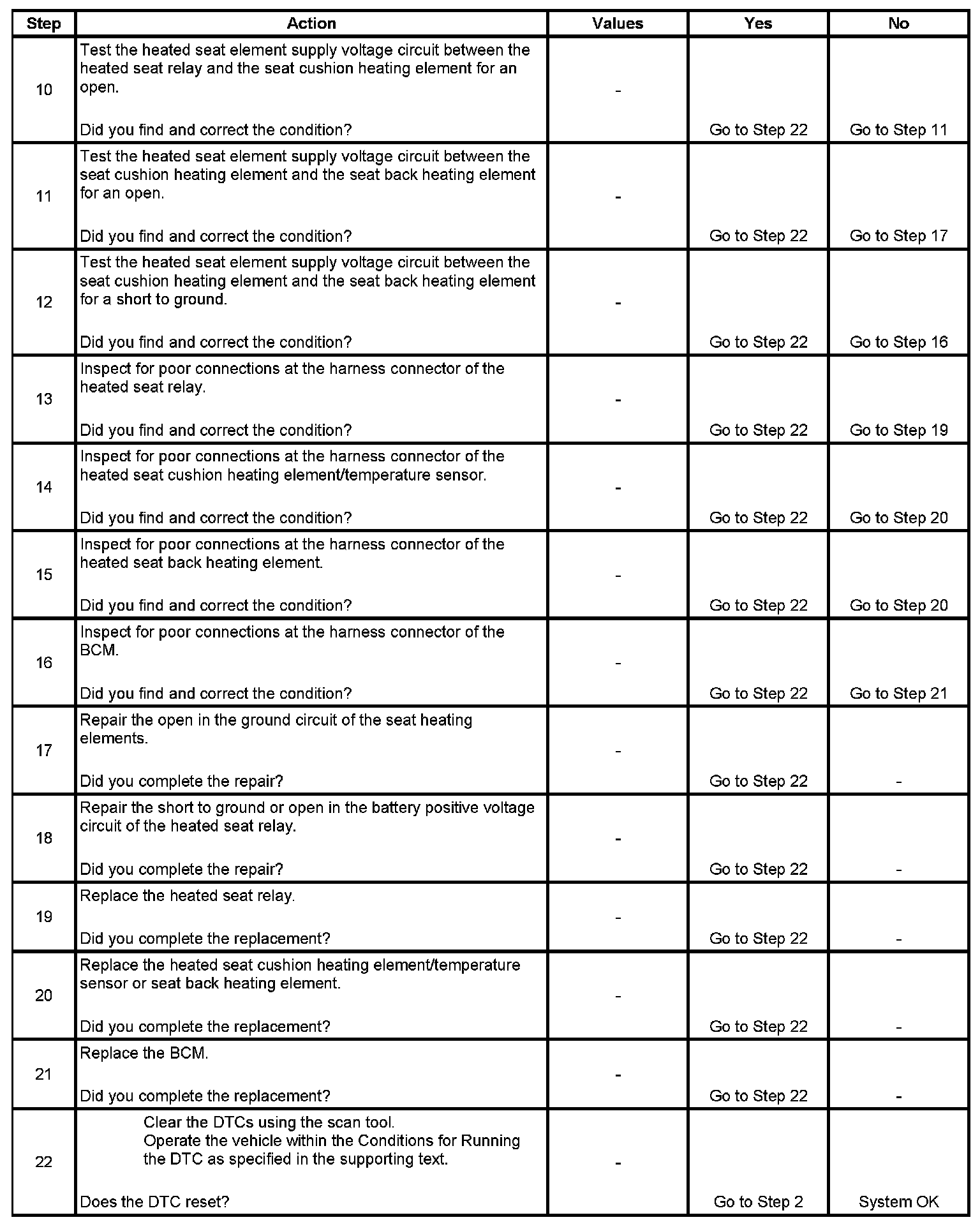 * Faults in circuits of the heated seat system other than the temperature sensor may cause this DTC to set.
