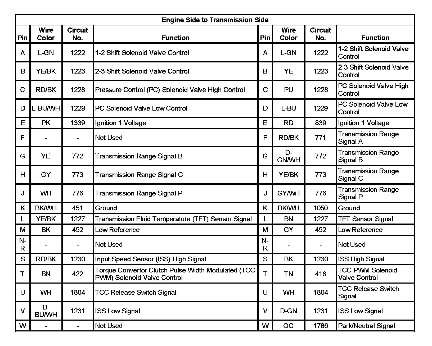 Automatic Transmission Inline 20-Way Connector End View (3.8L)