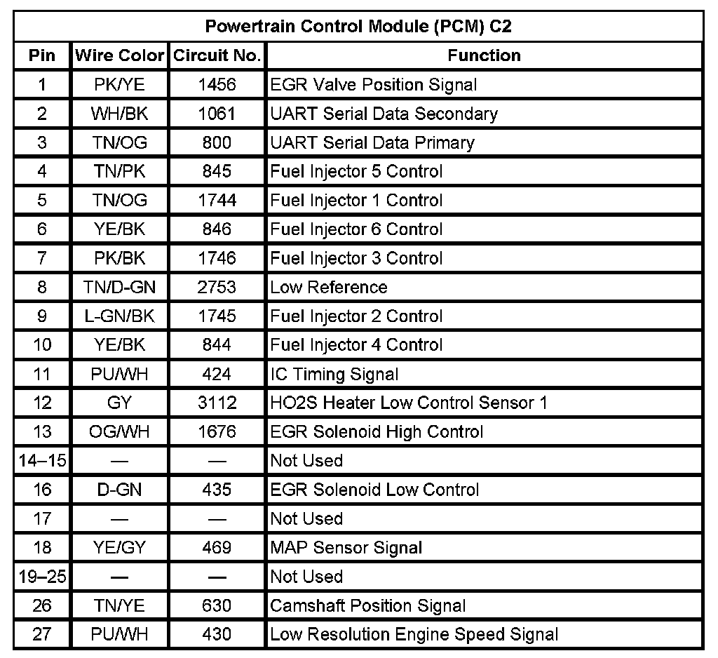 Powertrain Control Module (PCM) C2 (Pin 1 To 27):