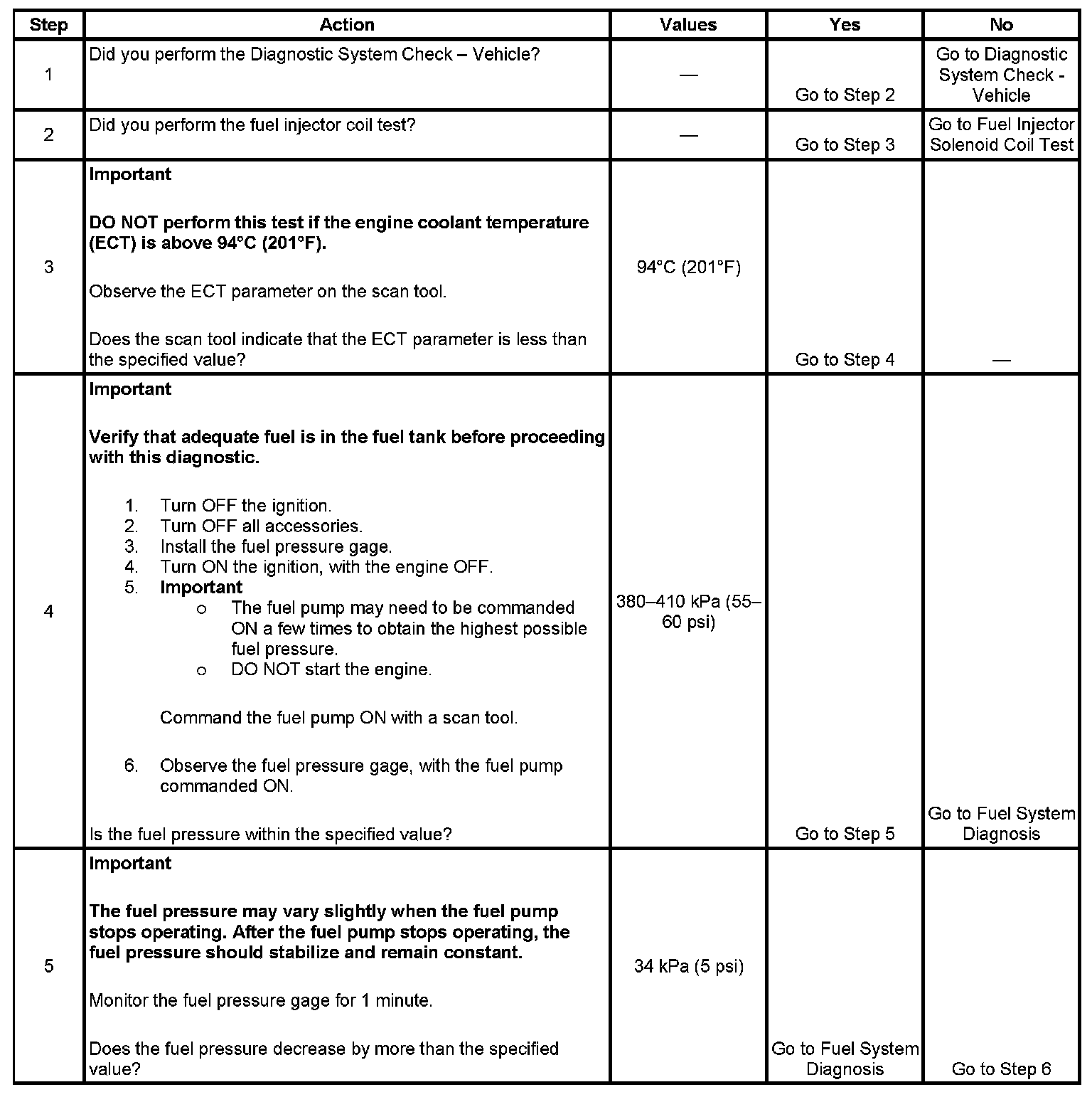 5. This step tests the ability of the fuel system to maintain fuel pressure after the pump stops.