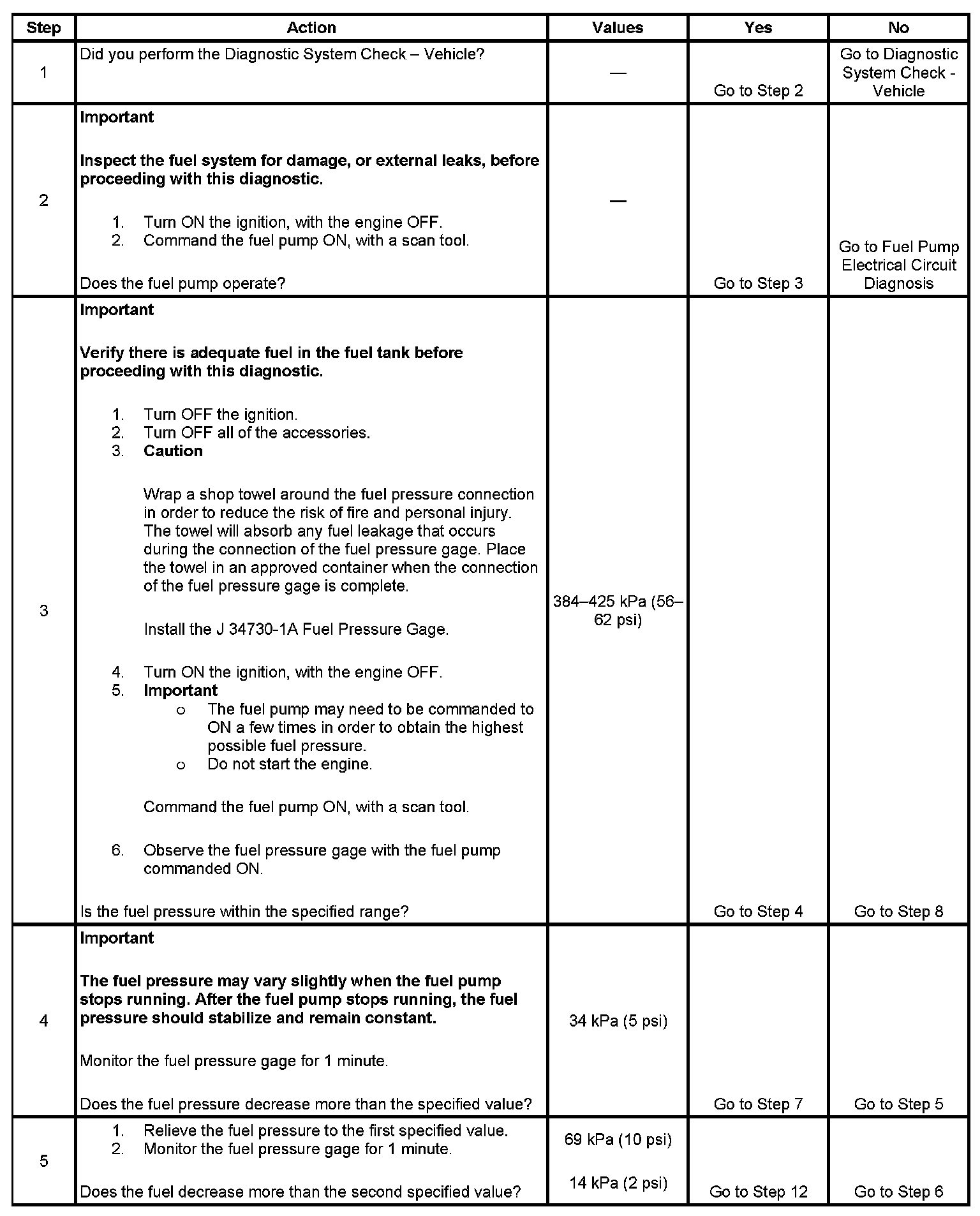 4. This step tests for an internal fuel leak. If the fuel pressure drops during this test, then an internal loss of pressure is indicated.