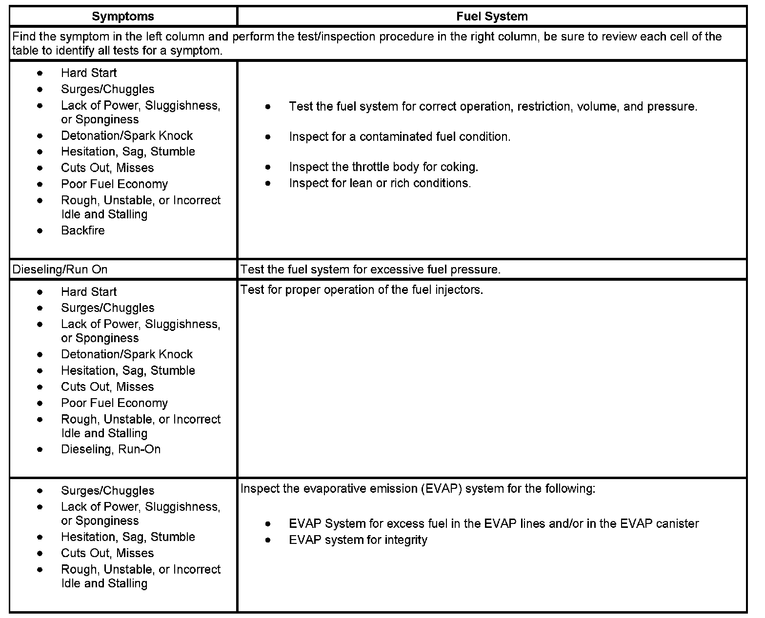 Symptoms - Fuel System