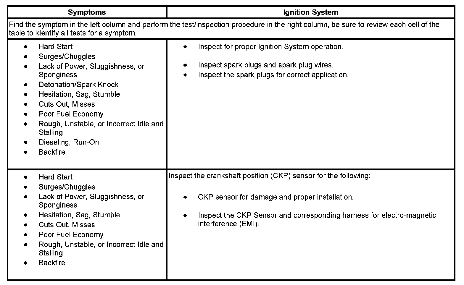 Symptoms - Ignition System