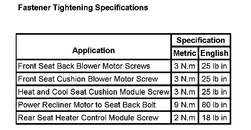 Fastener Tightening Specifications: