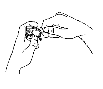 1. Insert a small coin between the 2 halves of the transmitter case at the slot provided near the key ring hole.
