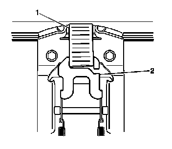 2. Install the small loop (1) onto the rear seat cushion latch (2).