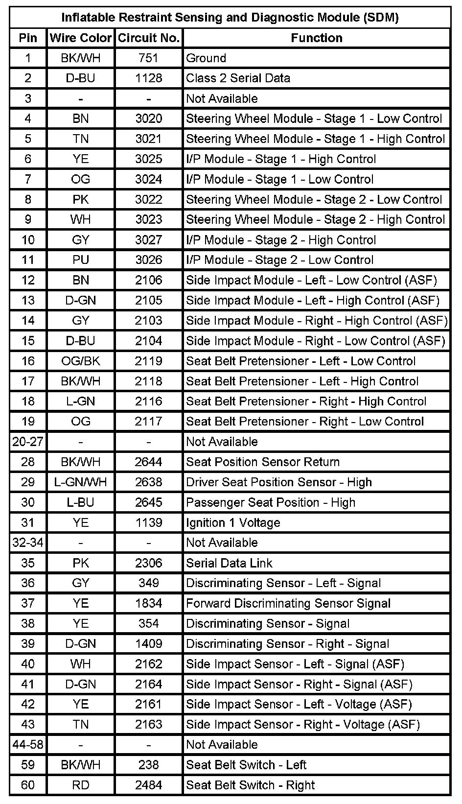 Inflatable Restraint Sensing and Diagnostic Module (SDM)