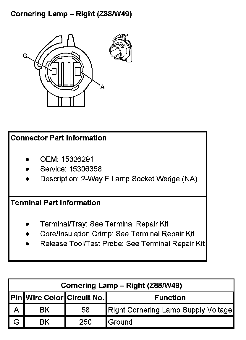 Cornering Lamp - Right (With RPO Codes Z88/W49):
