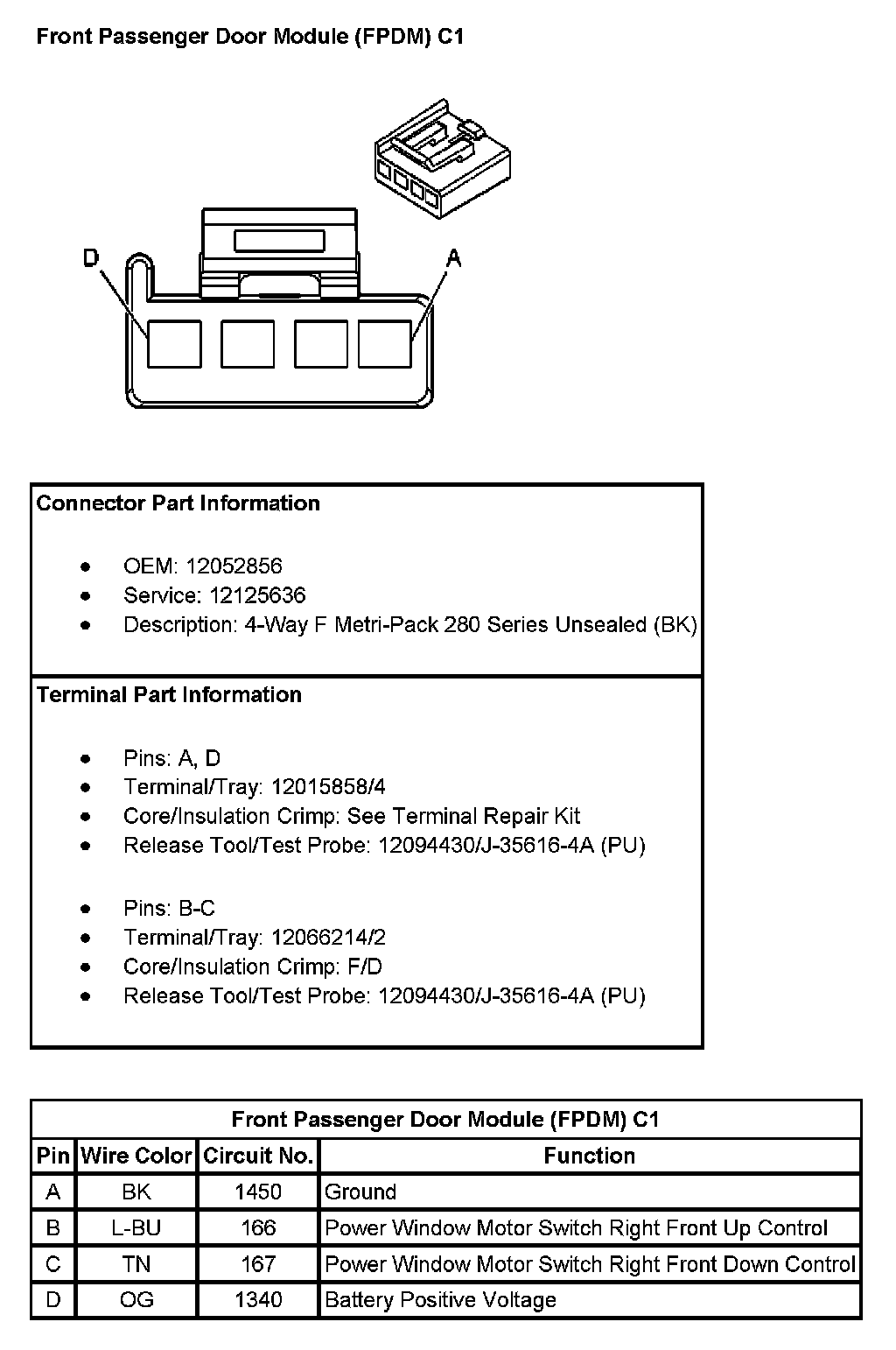 Front Passenger Door Module (FPDM) C3 (Outside Rearview Mirror Passenger) (DS3/DL2):