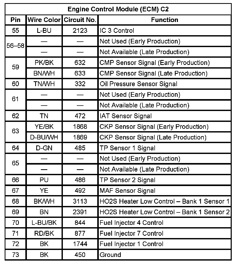 Engine Control Module (ECM) C2 (Pin 55 To 73):