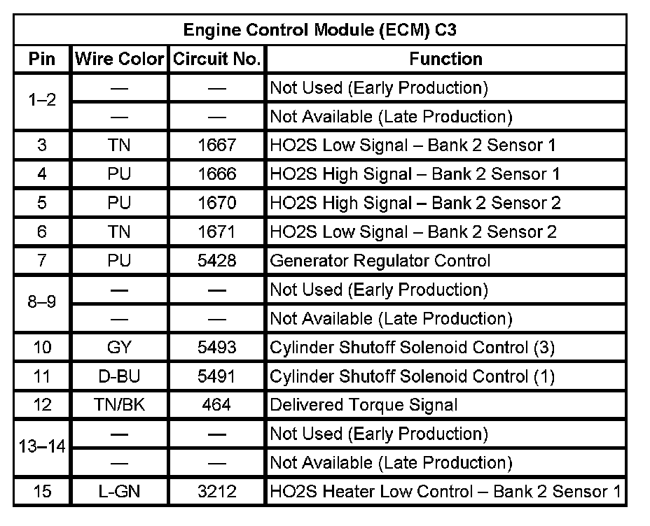 Engine Control Module (ECM) C1 (Pin 1 To 15):