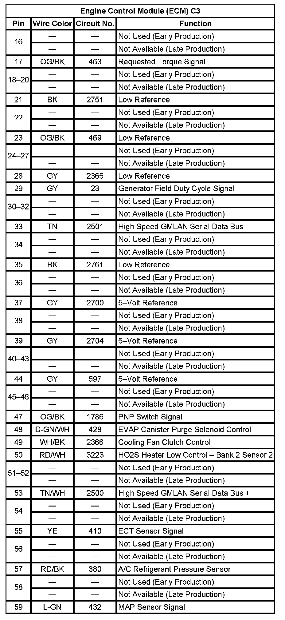 Engine Control Module (ECM) C2 (Pin 11 To 54):
